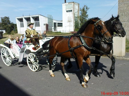 Dne 15.8.2009 se uskutečnily závody v pony - zápřeži v Chomutovském zooparku. Naši poníci tam nechyběli, v konkurenci čtyř spřežení jsme vybojovali 2.místo. Byli jsme tam nejmenší :).